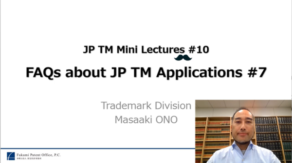 IP Video Presentation “Japanese Trademark Mini Lectures #10 FAQs about JP TM Applications 7” by Mr. Masaaki Ono