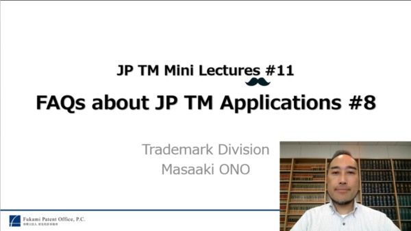 IP Video Presentation “Japanese Trademark Mini Lectures #11 FAQs about JP TM Applications 8” by Mr. Masaaki Ono