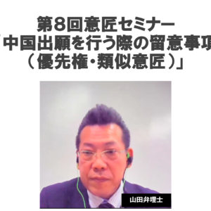 2025年5月27日(火)に第8回意匠セミナー「中国出願を行う際の留意事項(優先権・類似意匠)」を開催致しました。