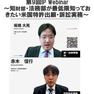 2025年10月24日(金)に第9回 IP Webinar ~知財部・法務部が最低限知っておきたい米国特許出願・訴訟実務~ を開催致しました。