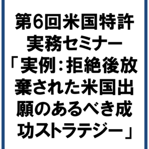 2026年3月10日(火)に第6回米国特許実務セミナー「実例:拒絶後放棄された米国出願のあるべき成功ストラテジー」を開催いたしました。