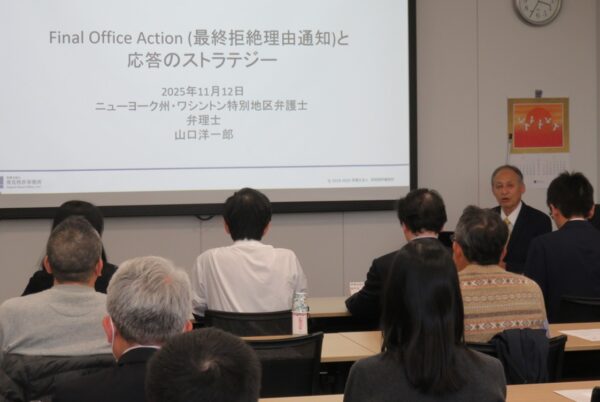 2025年11月12日(水)に第5回米国特許実務セミナー「米国最終拒絶理由通知と応答のストラテジー」を 開催致しました。