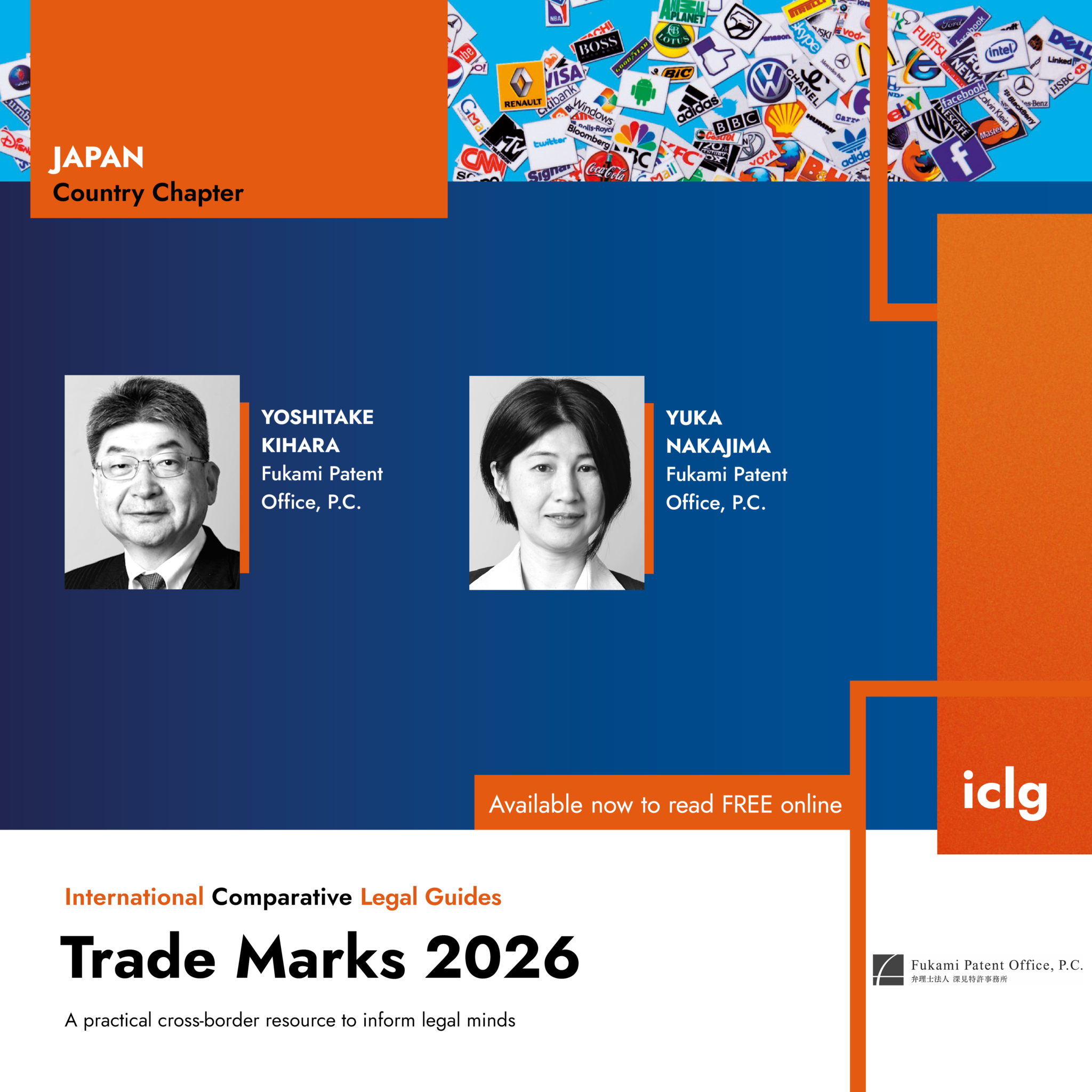 この度、英Global Legal Group社の“The International Comparative Legal Guide (ICLG) to: Trade Marks 2026”の第15版が出版されました。これは、世界24カ国の商標制度についてQ&A形式で多角的に記載した包括的ガイドブックです。弊所の商標法律部部長、中島由賀 弁理士が第11章 日本地域の章(93頁から101頁)を担当執筆し、寄稿致しました。